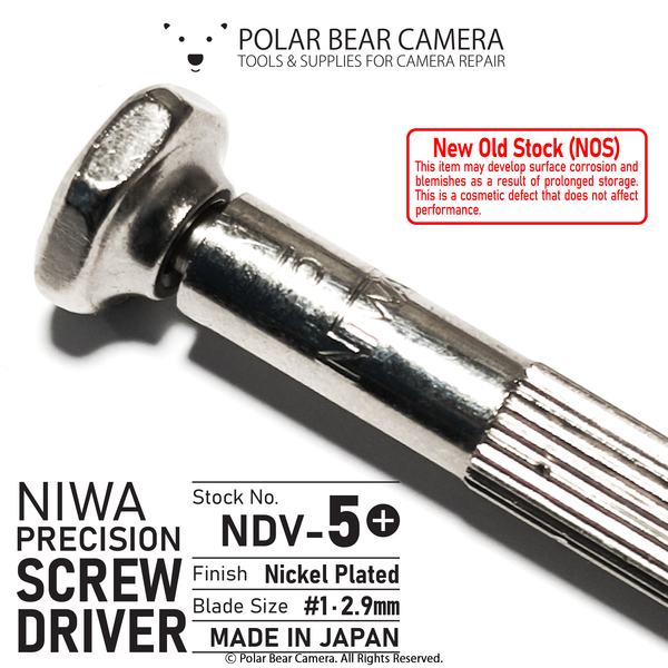 NIWA precision screwdrivers were prominent in the camera repair industry during the 1970s and 1980s. The original NIWA screwdriver was manufactured in Japan and ended production in the late 1990s. These are the last screwdrivers made in Japan before the brand was sold to Taiwan, and the handles bear the NIWA brand logo and model number.